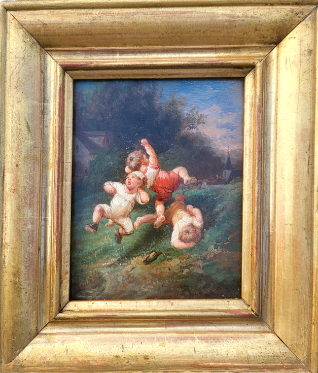 From this date, he settled in Le Havre, he mainly painted small format paintings where he depicted the world of carefree childhood, the joy of kids, mischievous and quarrelsome where the child is king.